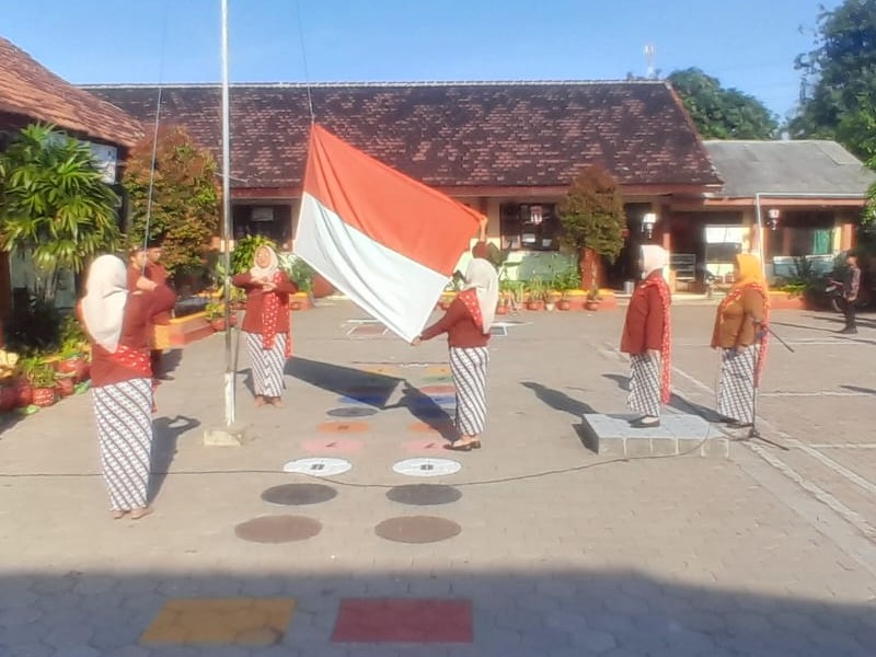 Bel berbunyi, menandakan upacara segera dimulai. Para siswa berbaris rapi sesuai kelas masing-masing. Petugas upacara yang juga siswa SD tampak berusaha tampil sebaik mungkin, meski sesekali terlihat gugup. Ketika bendera merah putih mulai dikibarkan, seluruh peserta menyanyikan lagu Indonesia Raya dengan penuh semangat, suara mereka menggema di halaman sekolah.